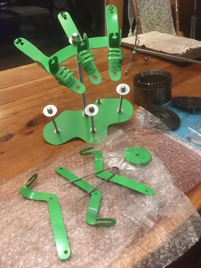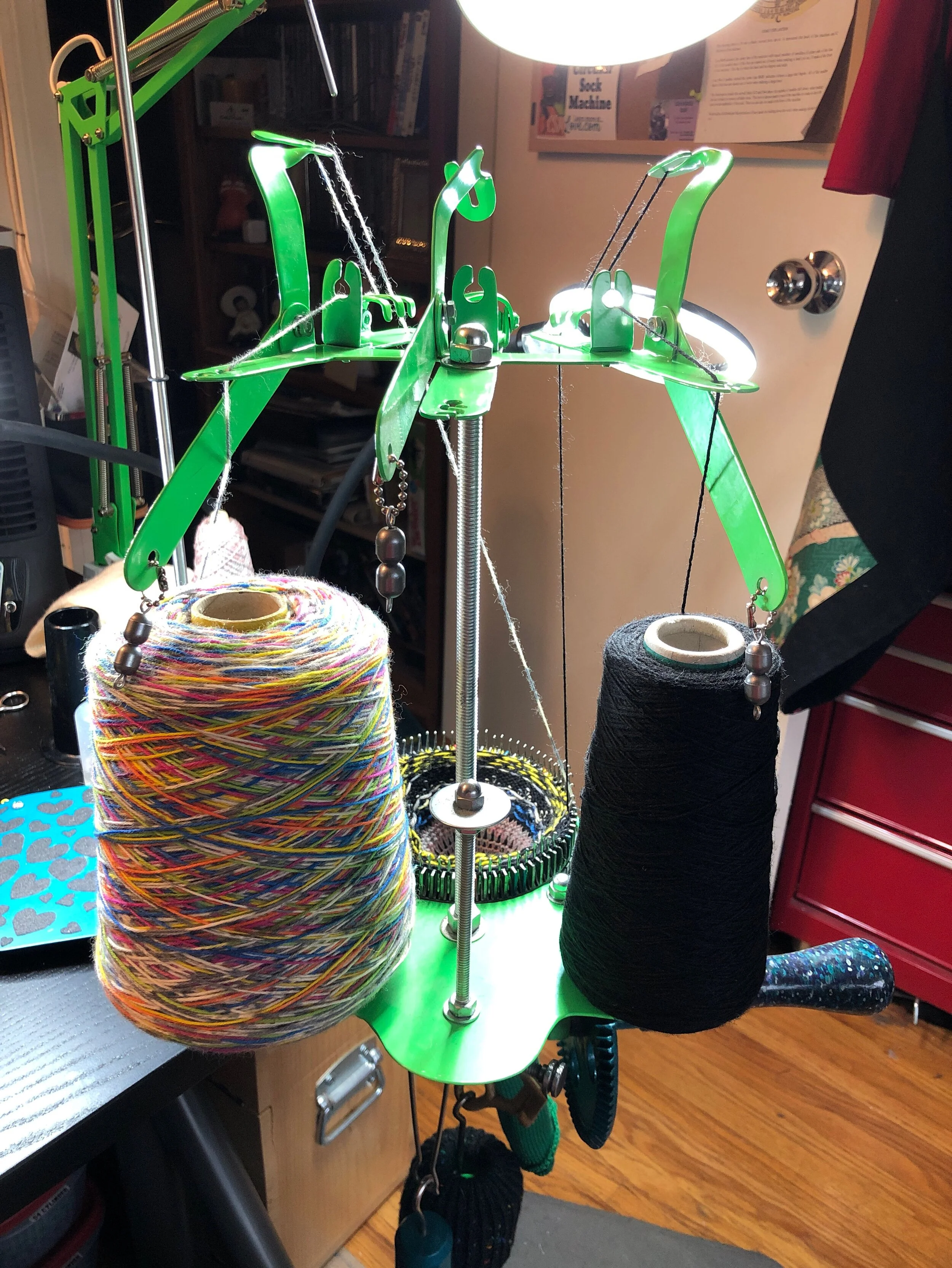 AN UPDATE: June 12, 2021 I changed the vertical mast from the 11” from the platform to the top to a new piece now measuring 16.5’ above the platform to better accommodate the Supergarne Aktiv yarn cone and still allow correct tension arm use.