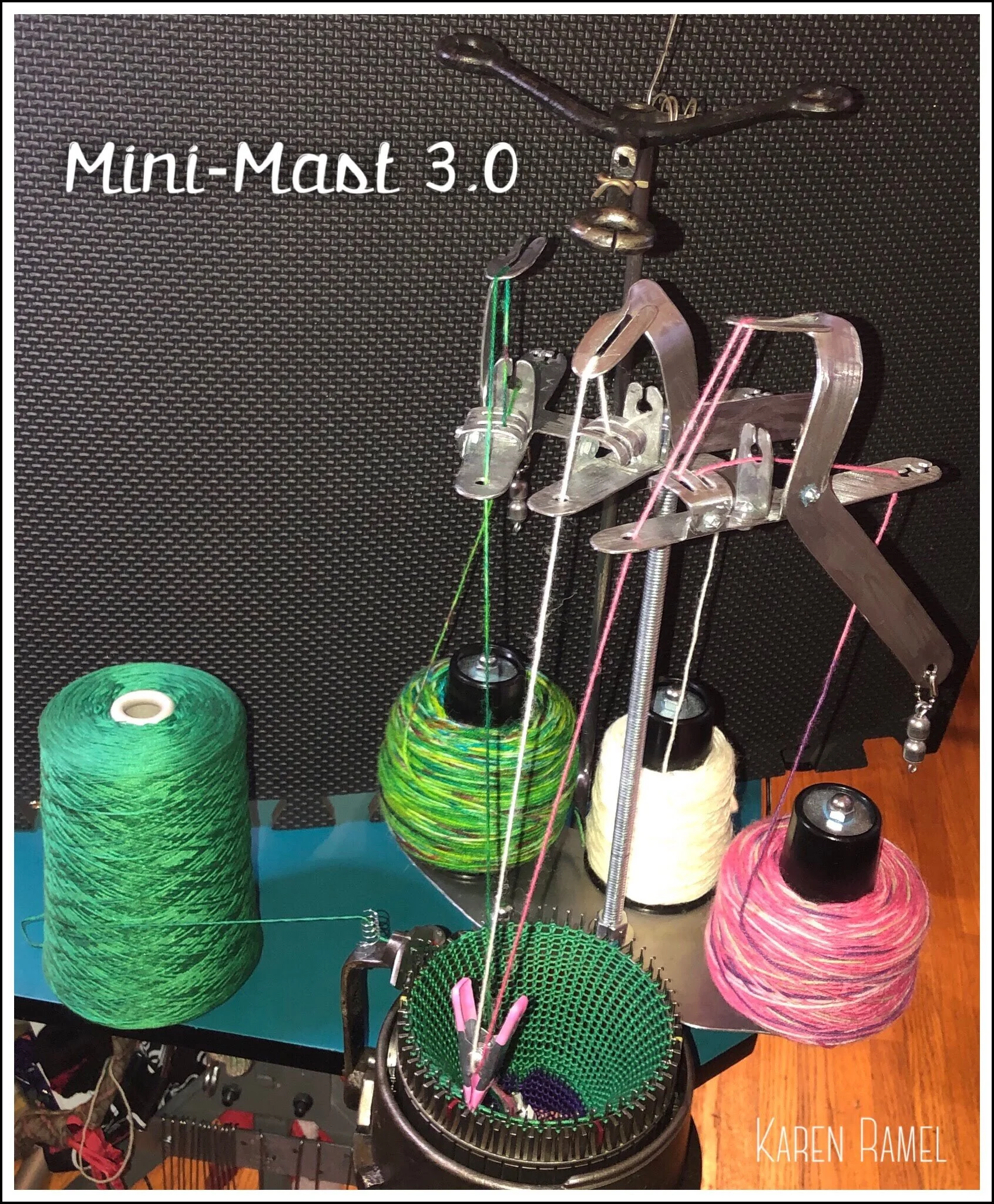 This began with visual inspiration by seeing Heidi’s and Egelantier’s Mini-Mast versions. Leap frogging with a base outline in paper format, I modified the paper components a few times prior to hand cutting their design out of sheet metal with my dremel. I modified my version so that nothing needed to be soldered and so that my royal cones can be used to hold yarn.