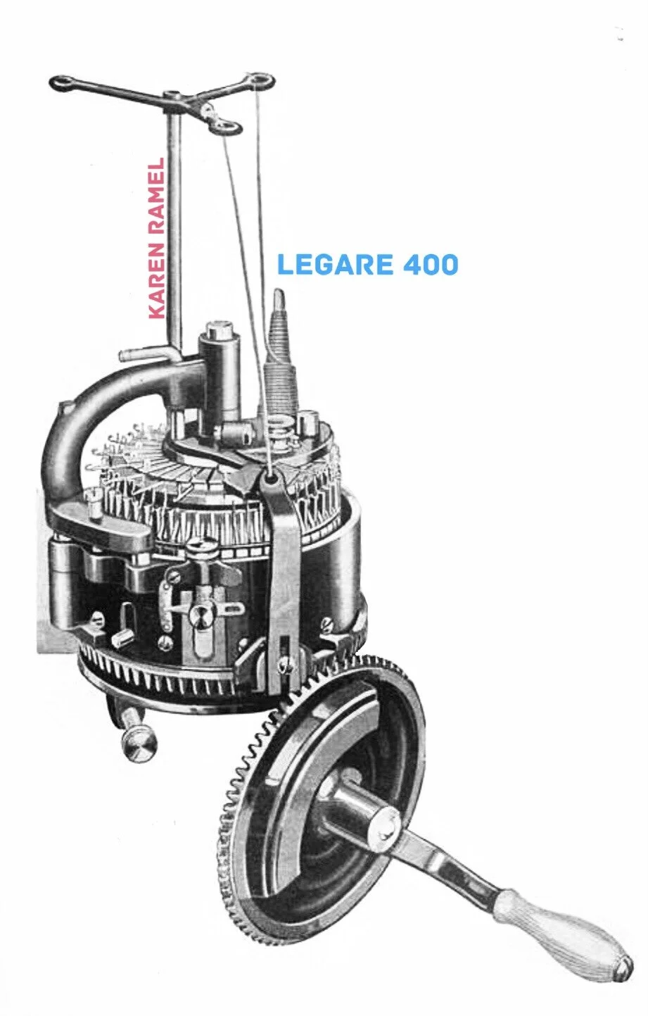 I have two fully compatible machines: the Legare 400 vintage (machine which was refurbished by Dave Lord of Chambord CSM October 2019) and the Chambord CSM AccuKnitter (which is a modern work of art based on the Legare machine).