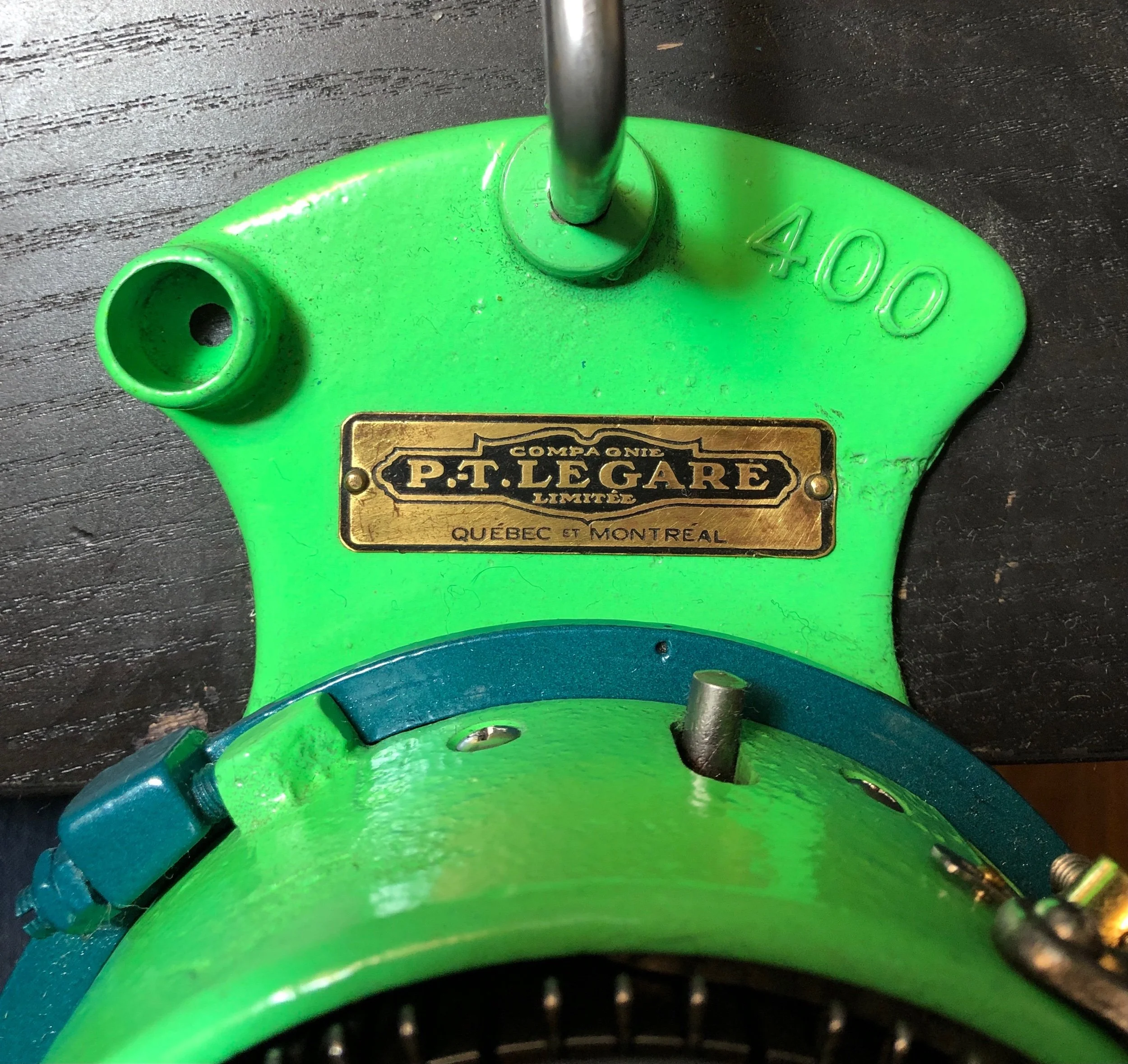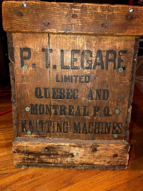 The Legare was made by the Creelman Co. in Canada. Records indicate a fire may have wiped out any specific production records. However we do know that the Legare had a variety of logo name plates, had a couple different baseplate shapes and maybe two styles of crankwheel. The creelman manual available online for this closed cam machine indicate this machine was made with one of two V Cam styles (the autoknitter open Cam being built with one of three V Cam styles). A V-Cam is the part on the inside of the machine that has a V shape - it’s responsible for the range of stitch size settings when the tension dial is turned. This machine also, at one point, had an upgraded cog wheel which included a yarn carrier adjustment for stitch timing (mentioned above). Basically if your machine has a solid crankwheel (not the four holes of the later models) and lacks the yarn carrier stitch timing upgrade on the cogwheel then your machine is definitely older.