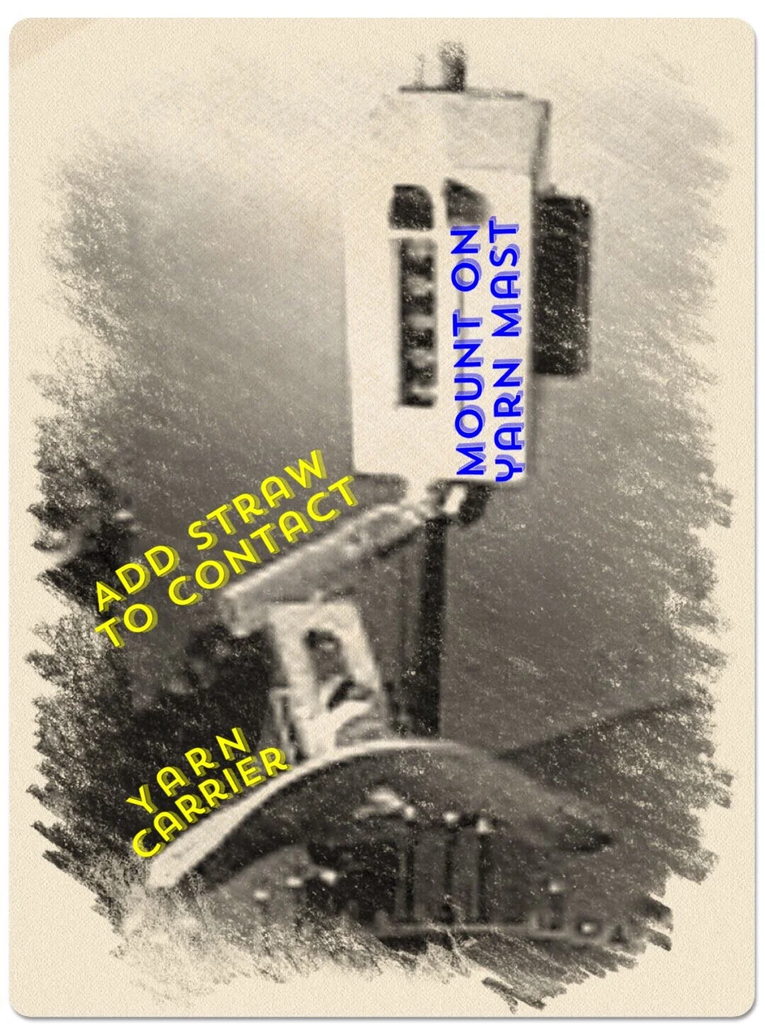 One user took a digital ring row counter and installed it to the yarn mast with a 3D printed mount and added a thin sheet of metal over the button for the back of the vintage yarn carrier to contact and count as it goes by. Their video.