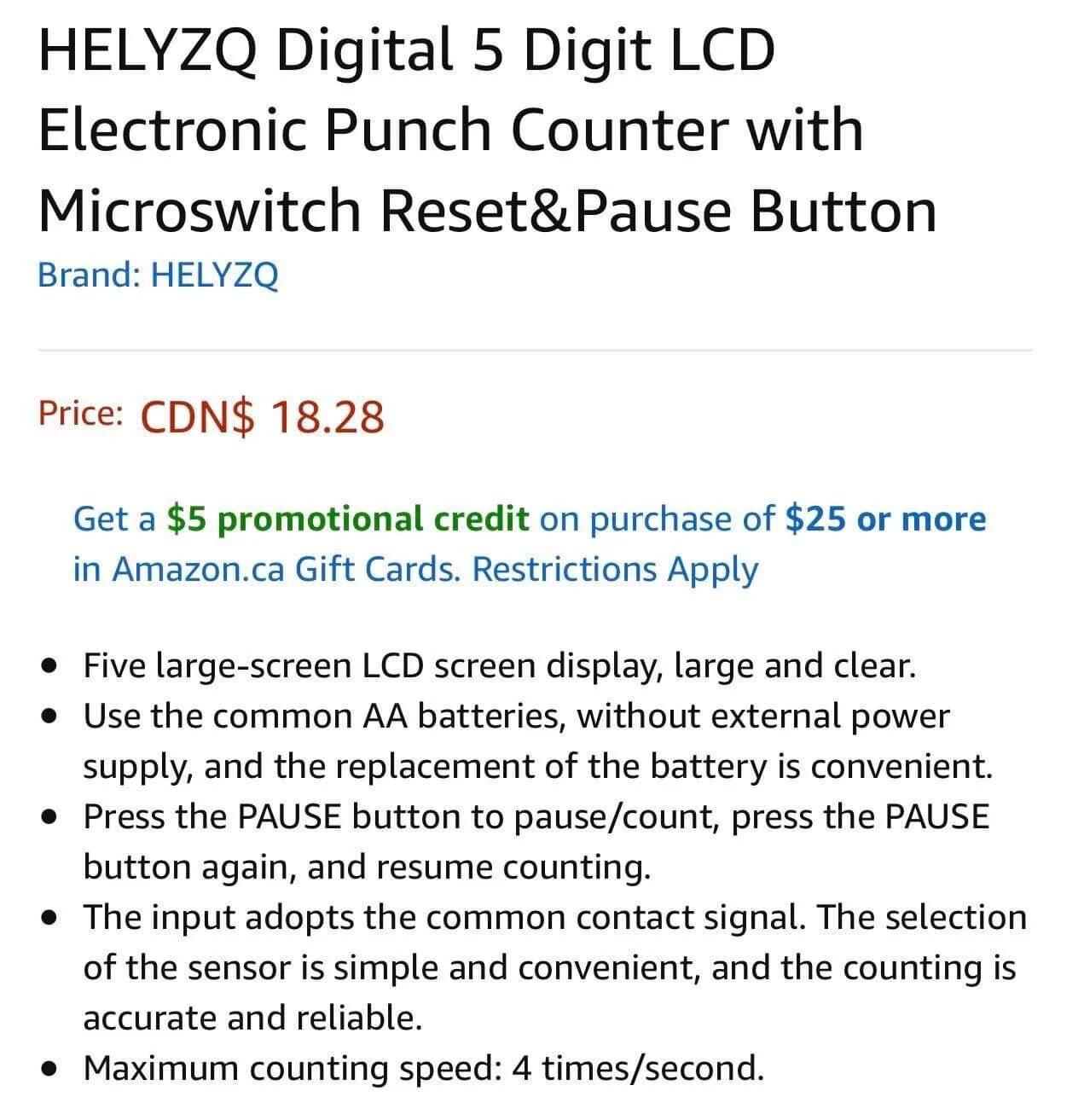 Proximity Row counter powered by wall plug or optional 9V battery CAD$82.08