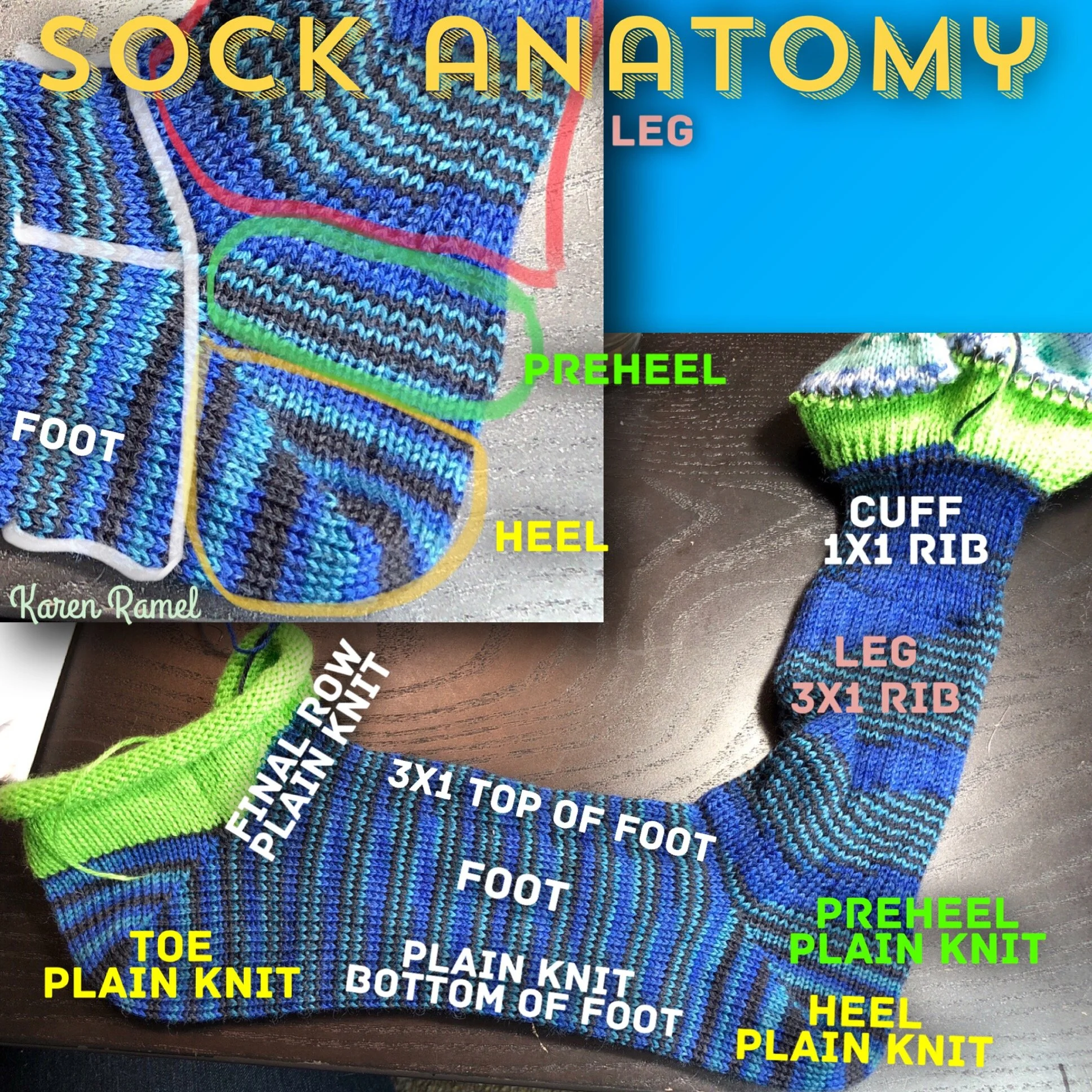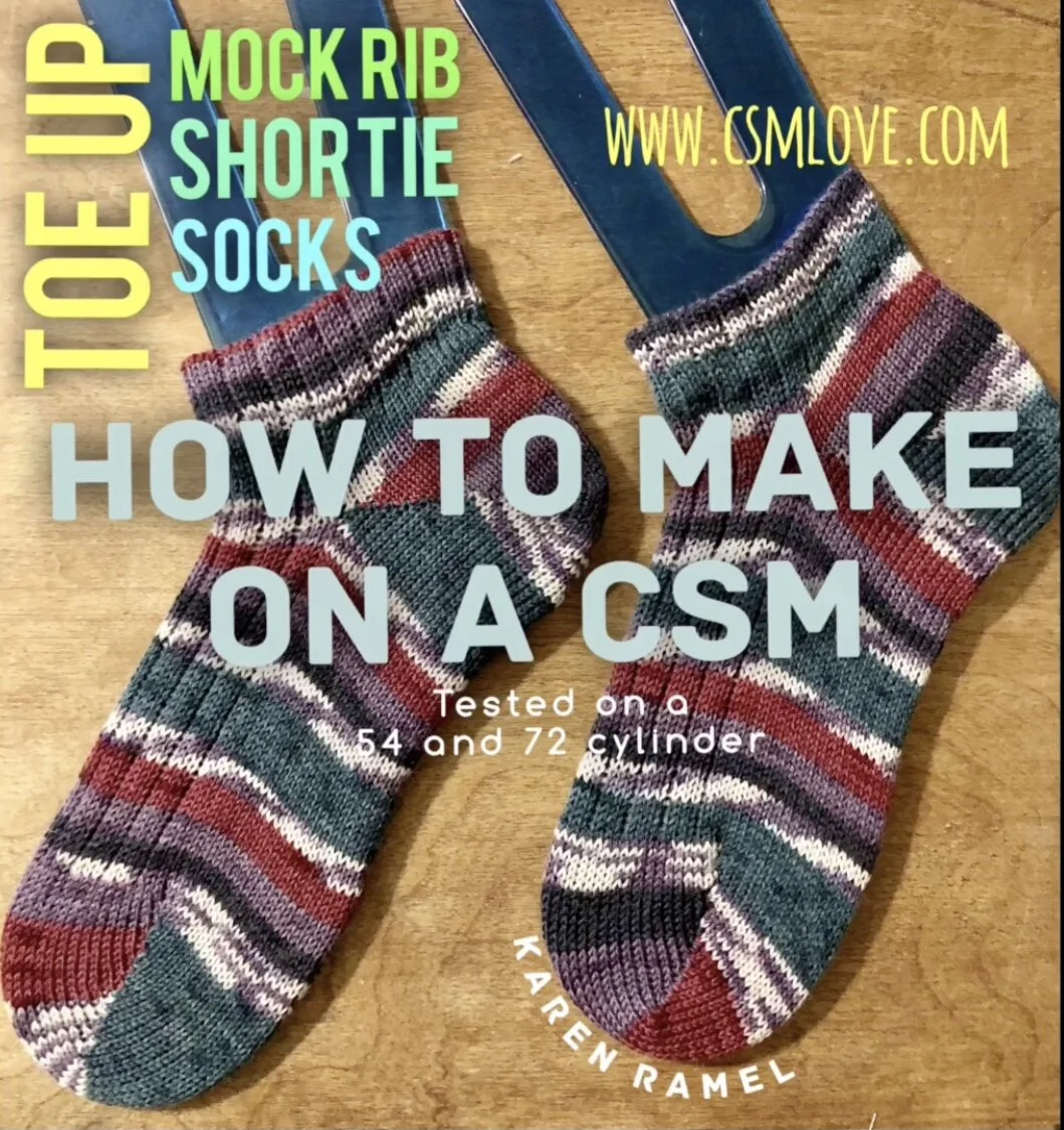 This TOE UP pattern is the sibling to the CUFF DOWN MOCK RIB SHORTIE SOCK offered earlier in 2020. This is the SAME sock but worked from the TOE UP, featuring an OFF MACHINE manual HUNG HEM. This video reviews the segments of this sock worked both cuff down or toe up, reviews the reference points on the cylinder, how to make these yourself and also how to finish them afterward.