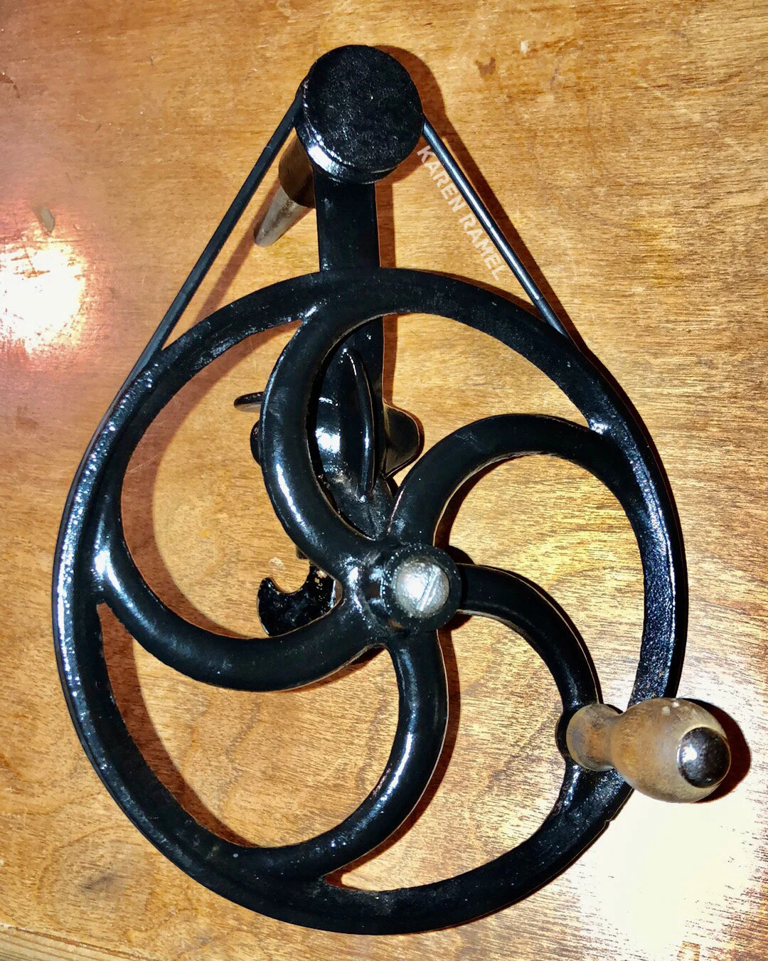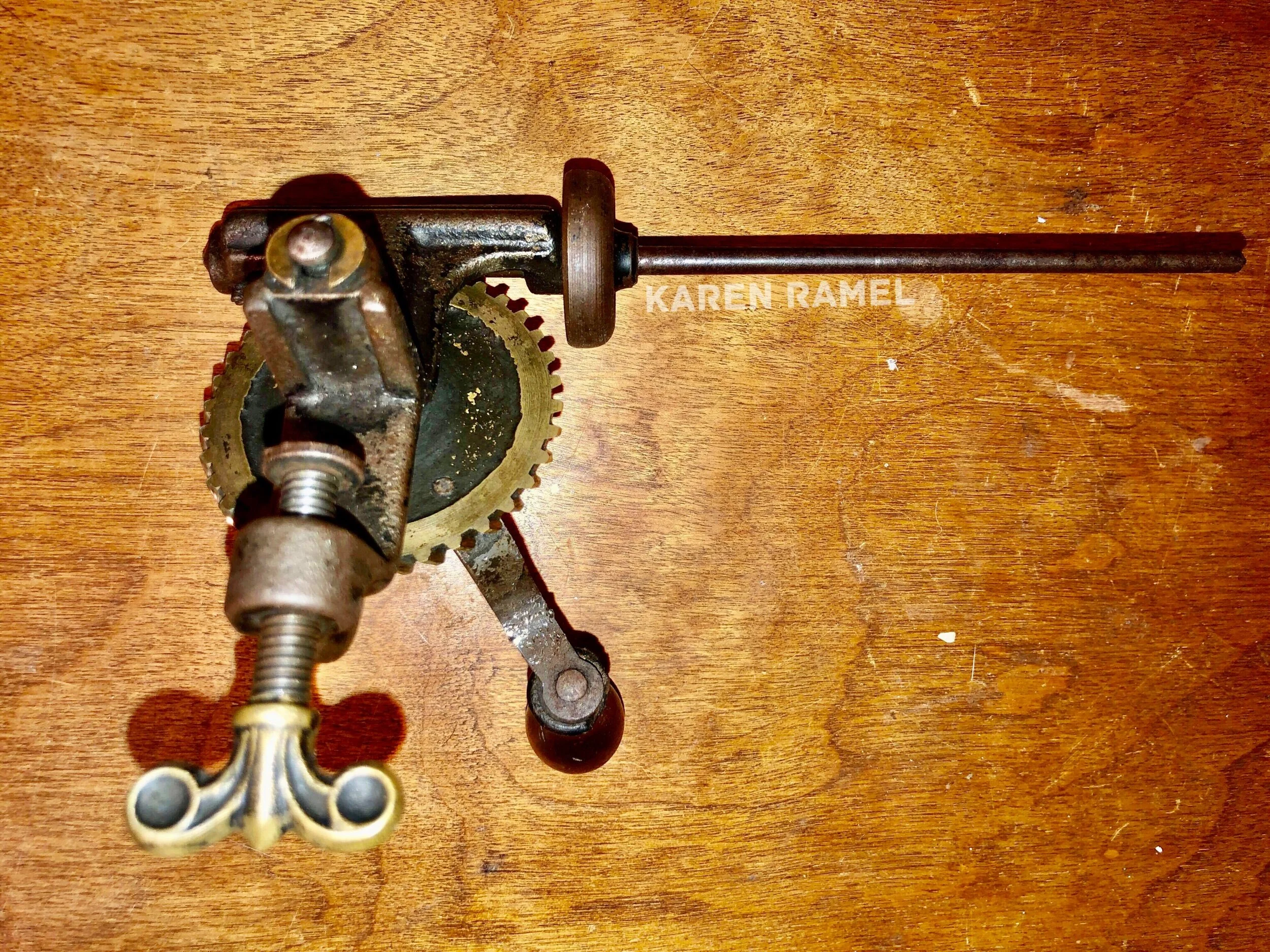 Is to buy the winder shown here (it goes by many names and is widely available on eBay) - this winder in itself holds very little yarn HOWEVER if you make yourself an adapter with a recycled plastic container and extra lid (not my idea) you can add cardboard cones (not use the wire yarn guide on the bottom) and manually wind yarn onto it like the vintage winders in the next segment. I DON’T recommend this winder due to its severe limitations on how much that can be wound due to space available.