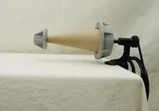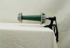 These style winders often means manually needing to direct the yarn (I find this difficult personally) however one can usually wind onto on a cardboard cone or a wood bobbin (see further down this page). One option is to use a rubber stopper with a drill - but as it uses a drill please find info on that on YARN WINDERS - ELECTRIC