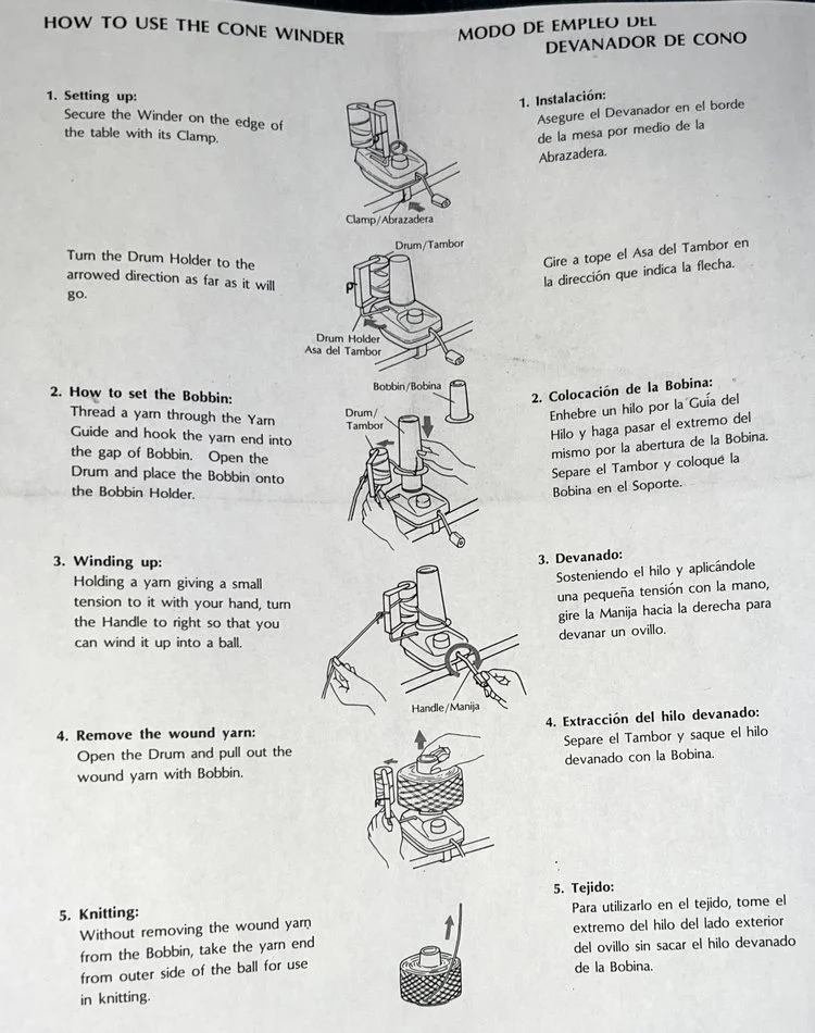 My findings having bought and tried this winder: although a beautiful wood design, the way cones are mount are finicky with the need to still guide the yarn by hand - I recommend any of the vintage winders with adapters over this as they are easier to add or remove cones while both needing hand direction on yarn placement.